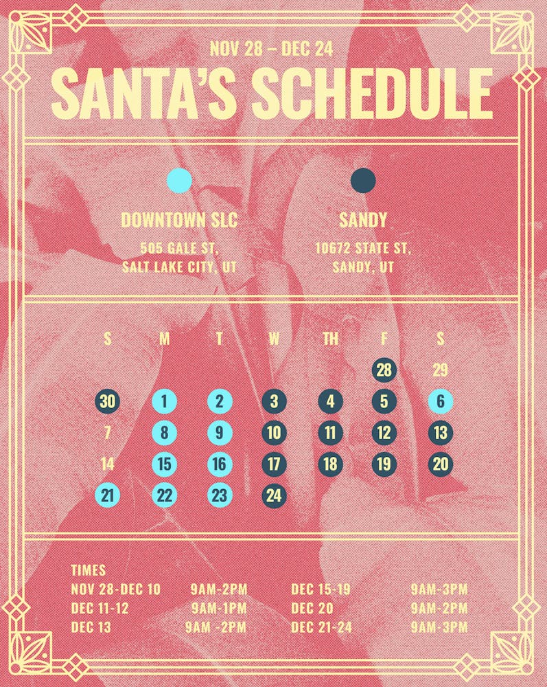 Brunch with Santa is back Salt Lake City and it’s the most wonderful time of the year! We’re bringing the holiday magic straight to your brunch table! Our Brunch with Santa schedule is officially here and it’s your chance to enjoy the best brunch in Salt Lake City, Utah, with great food, great vibes, and the jolliest guest of all, Santa himself!